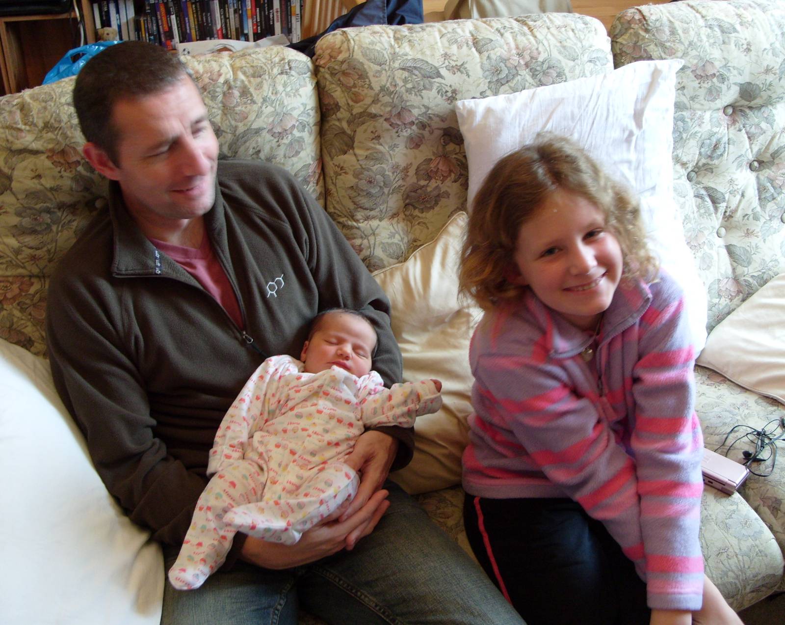 Two days old, and the relatives can't keep out of the picture. That's Amelie's uncle and cousin stealing the limelight.